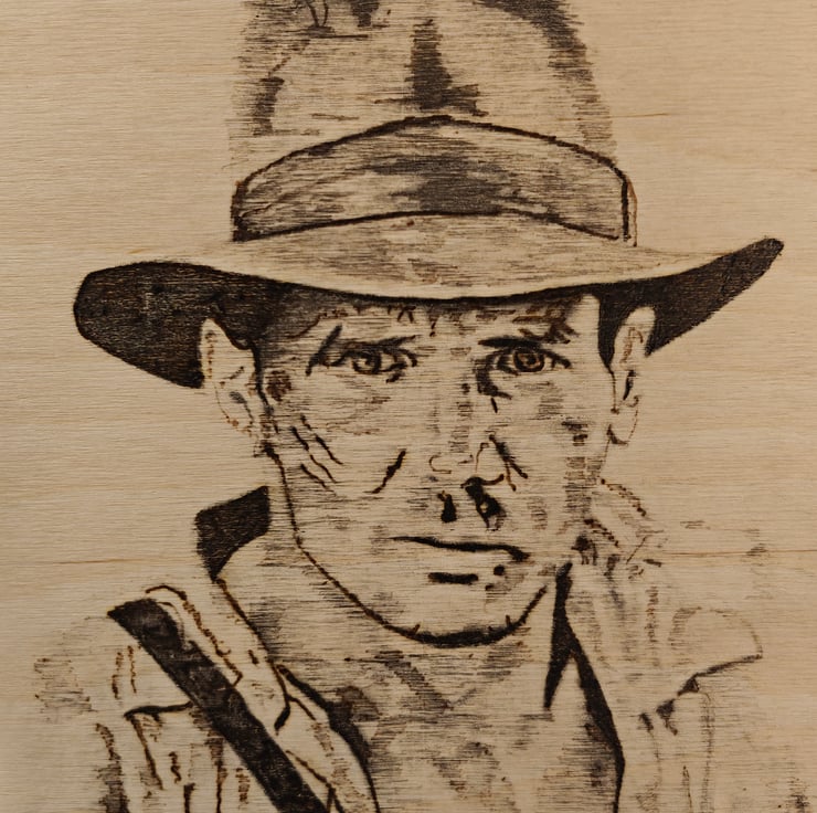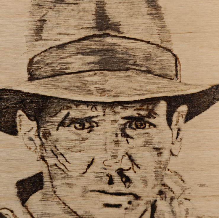 Burned by hand onto 3mm plywood 21cmx30cm A4 sized. Finished with varnish and with a wall hook attached.