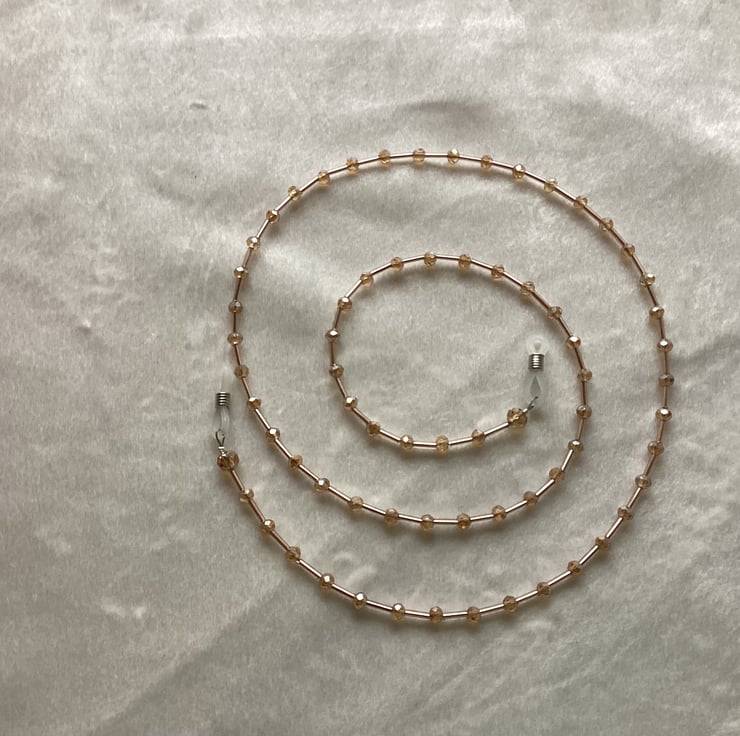 This glasses chain made by me in my home studio in West Midlands.