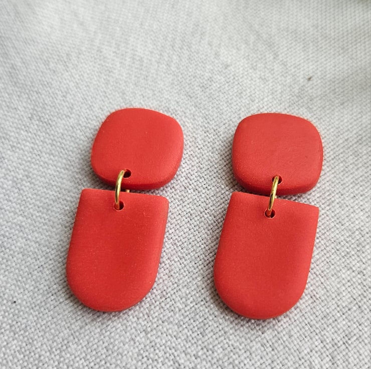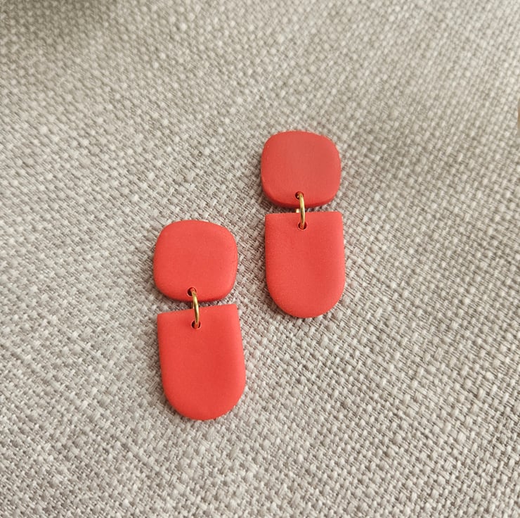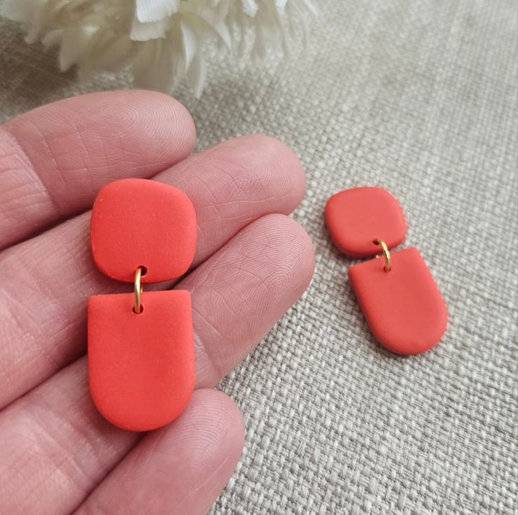 Burnt orange dangles, made from super lightweight polymer clay and mounted on a stainless steel earring post.