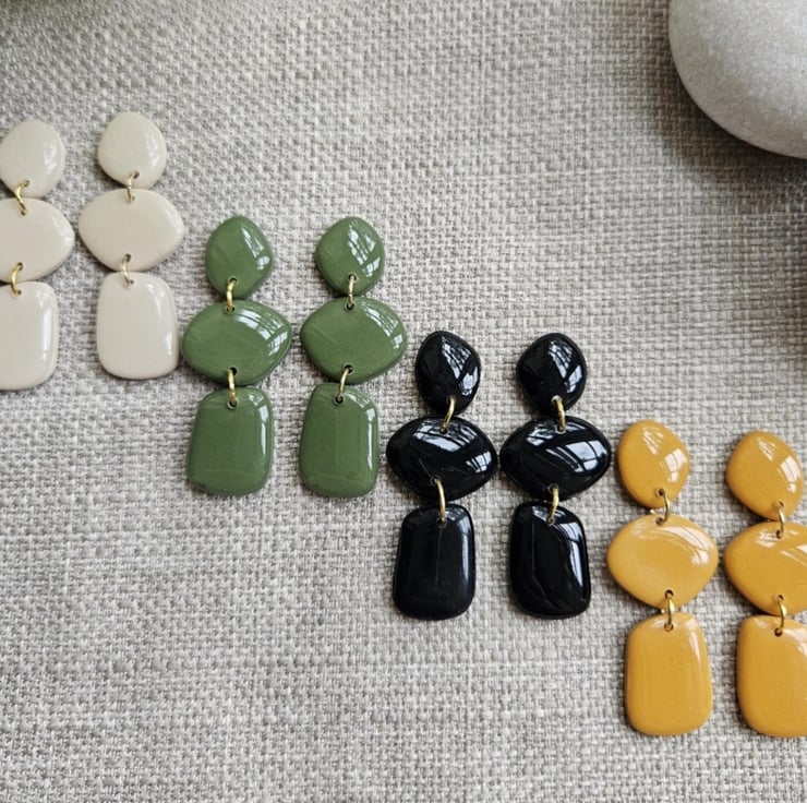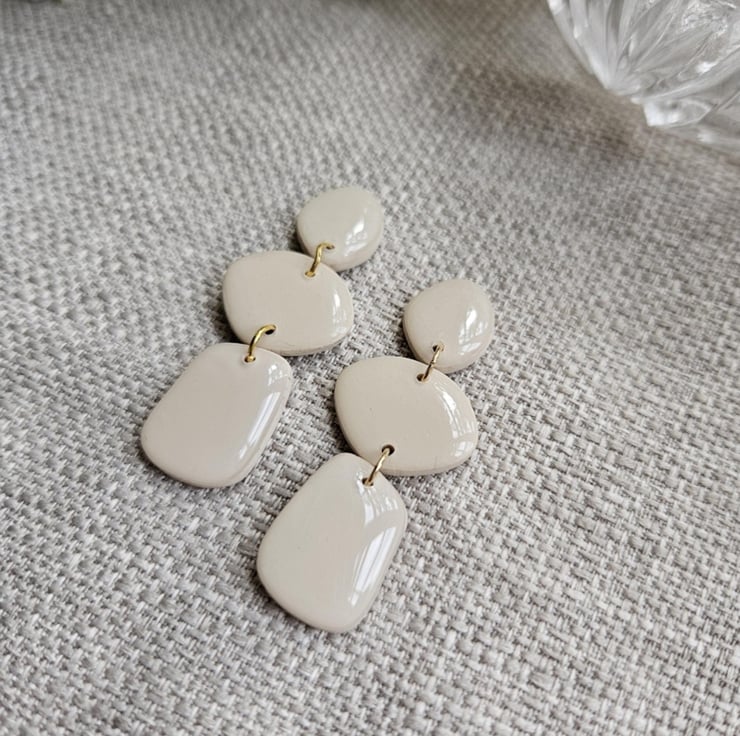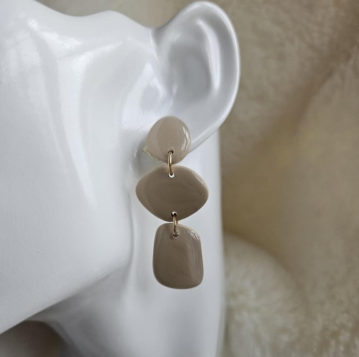 Beautifully shiny pebble trio in a neutral shade. Mounted on a stainless steel earring post