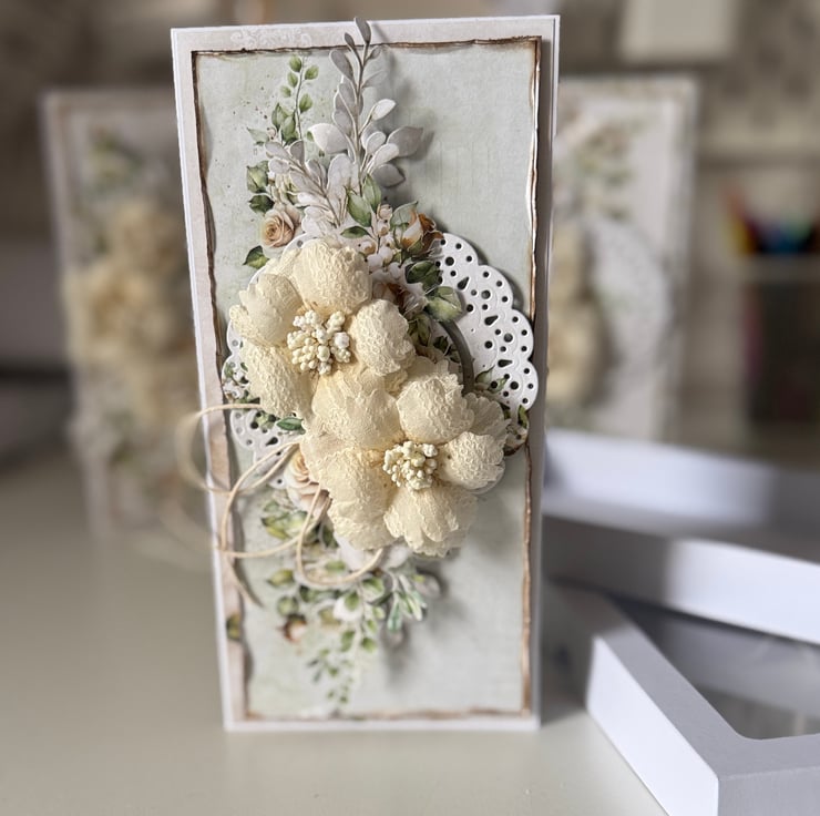 This Luxury Handmade card with handmade fabric flowers is in size 10/21 cm. 3D Card coming with elegant box. It’s perfect gift idea for: