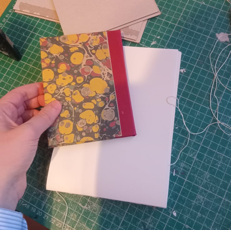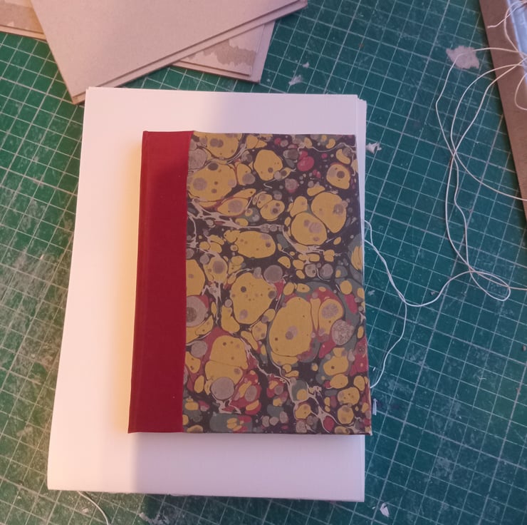 Small slim a6 notebook with printed marble design. Embossed paper on spine, hardcover