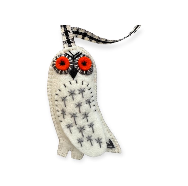 This little felt Snowy owl is crafted from 100% wool felt ,hand embroidered and stuffed with natural wool fleece.