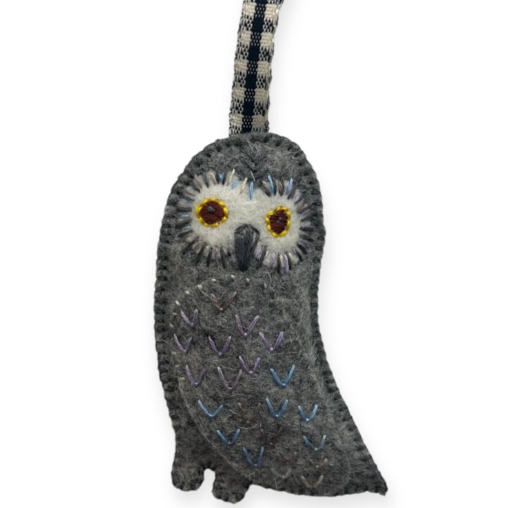 This little grey owl is crafted from 100% wool felt and hand embroidered. It is stuffed with natural wool fleece making it an eco friendly and sustainable gift
