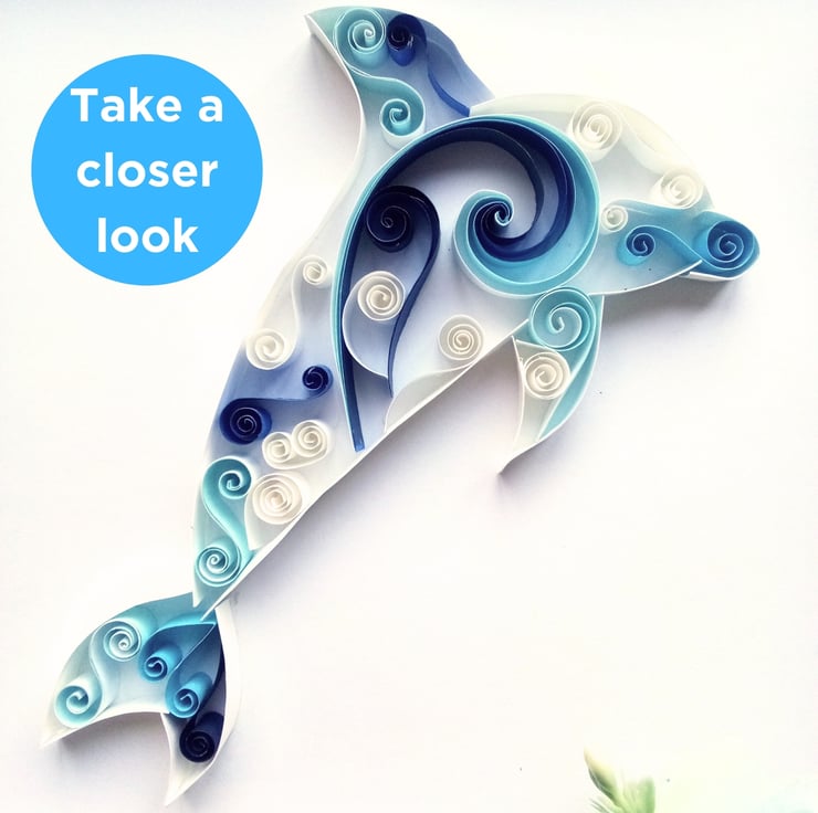 This adorable dolphin, made from delectable curls and swirls of hand-rolled paper, will transport your little one on a magical undersea adventure. Suitable for girls and boys alike, this delightful artwork will have pride of place on your child's walls and is sure to be treasured for many years to come. The perfect finishing touch for a nursery, bedroom or playroom, especially if you have opted for an under the sea theme.