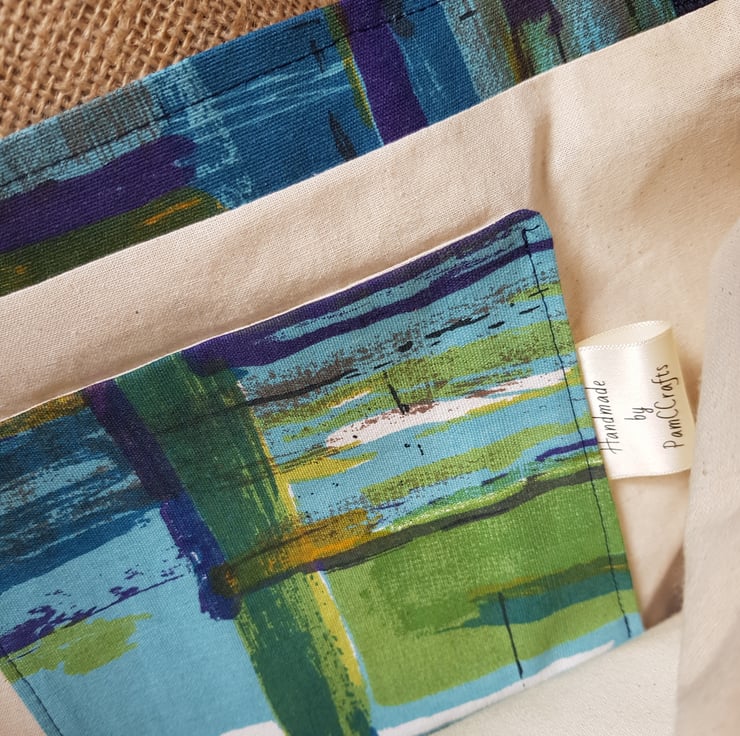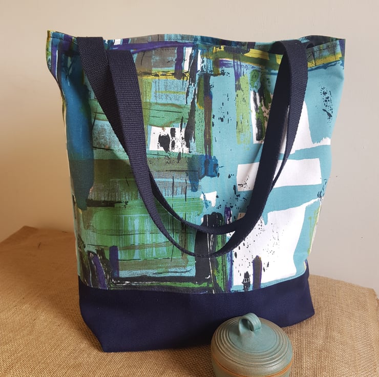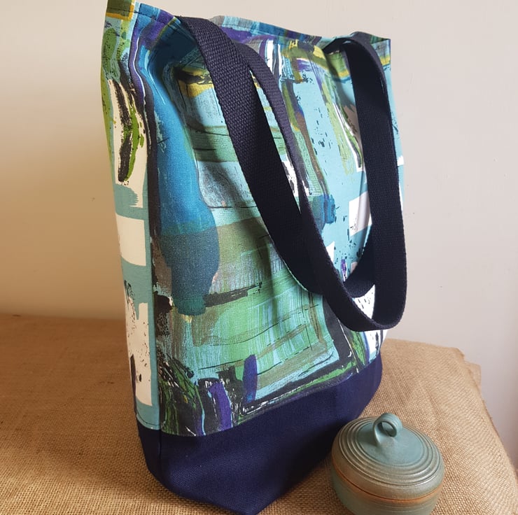 This is a generous, stylish and strong tote bag. I have improved the design and added a strong cotton canvas base which I have interfaced.