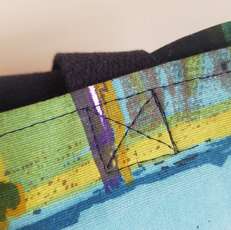 The main body of the bag is a furnishing weight vintage cotton, previously used for curtains, which I have interfaced to give extra strength.