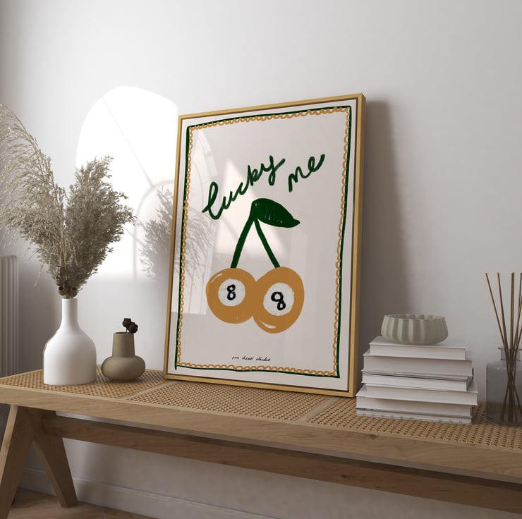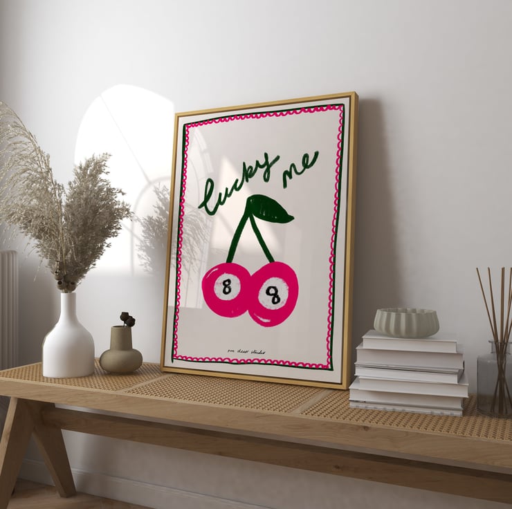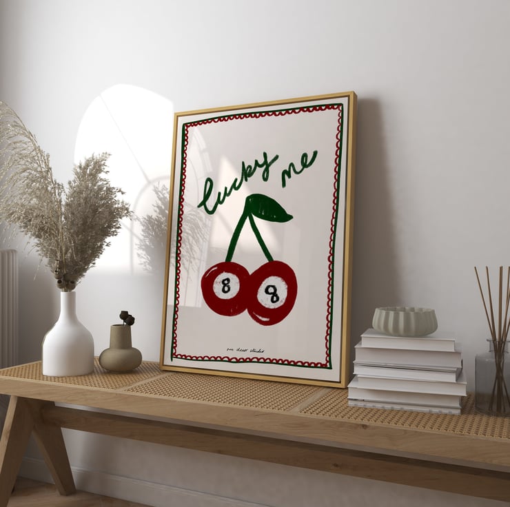 Lucky Me 8 Ball Art Print Poster, Vintage Food Print, Trendy Retro Print, Cherry Illustration, Mid Century Print, Modern Kitchen Wall Art