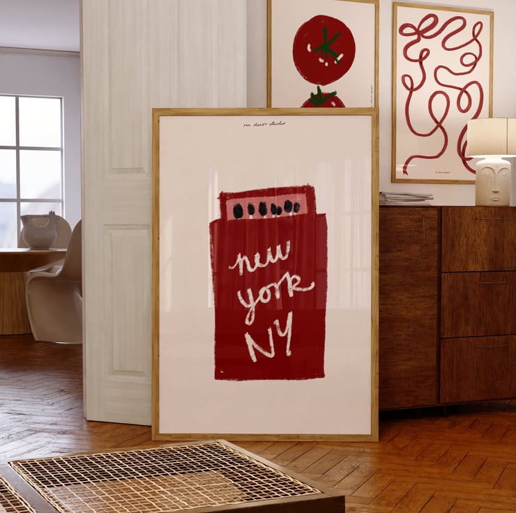 New York Matchbox Art Print Poster, Funky Vintage Apartment Trendy Retro Mid Century Print, Modern Kitchen Wall Art, Dorm Bar Cart Art