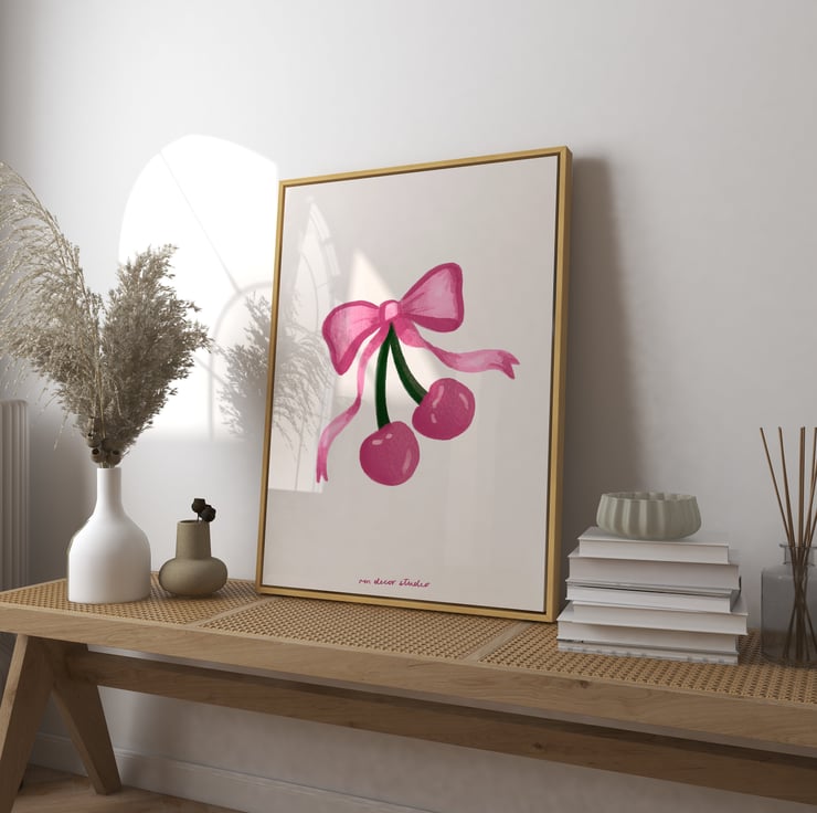 Cherries and Bow Art Print Poster, Hand Drawn Print, Trendy Retro Print, Cherries Bow Illustration, Mid Century Print, Modern Kitchen Art