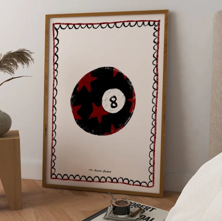 Star 8 Ball Art Print Poster, Vintage Food Print, Trendy Retro Print, lucky 8 ball Illustration, Mid Century Print, Modern Kitchen Wall Art