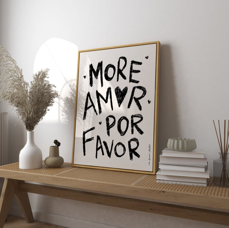 More Amor Por Favor Art Print Poster, Heart Valentine Trendy Retro Print, Love Heart Illustration, Mid Century Print, Modern Kitchen Art