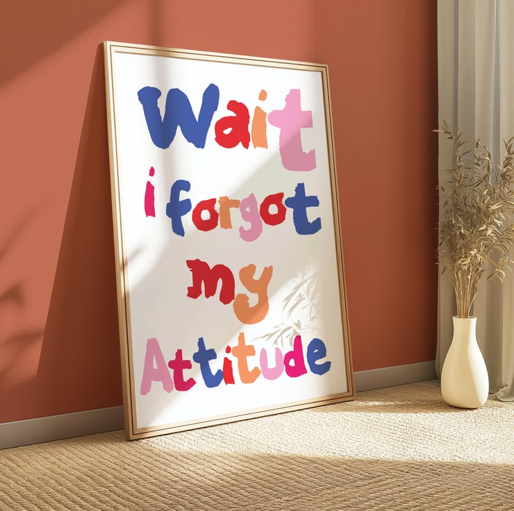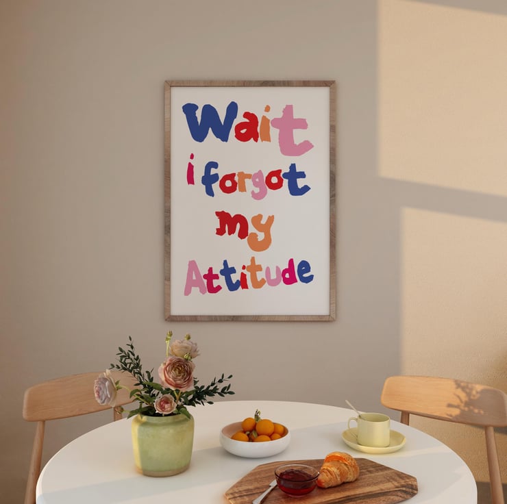 Wait I Forgot My Attitude Rainbow Art Print Poster, Trendy Retro Mind set, Mid Century Print, Inspiring Self Care Modern Kitchen Art