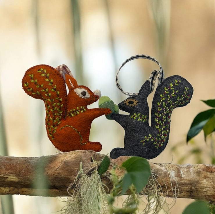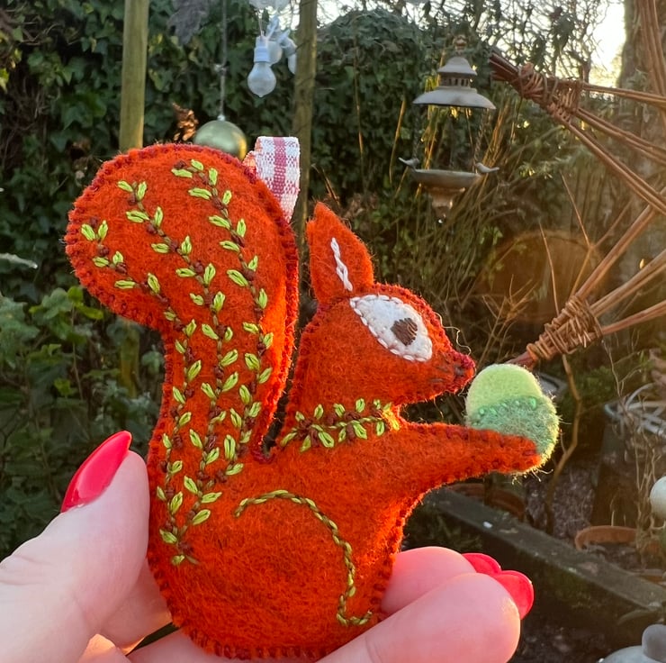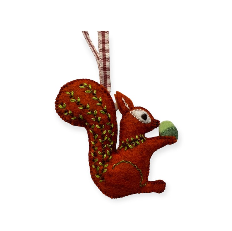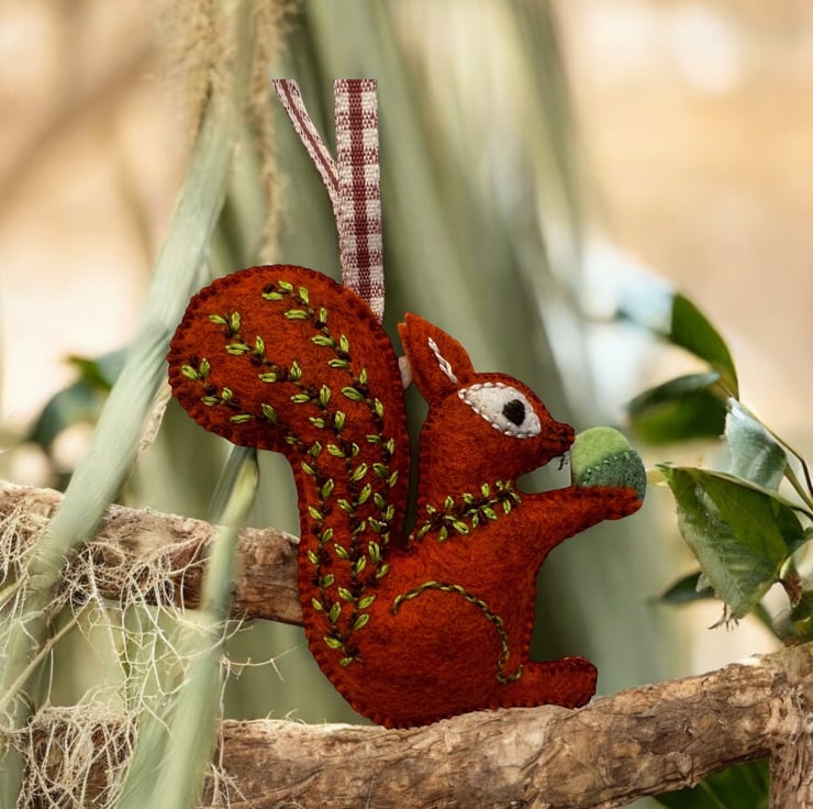 My squirrel felt hanging decoration is a new addition to the woodland collection. Each squirrel is unique and made from 100% wool felt, wool fleece stuffing and DMC cotton thread.