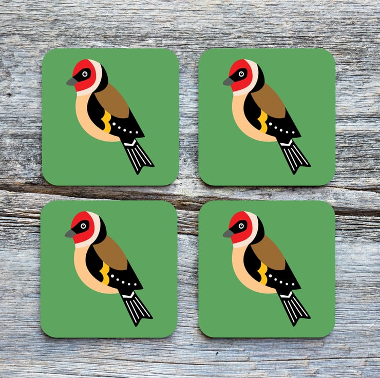 Choose either one coaster or a set of 2, 4 or 6 coasters from the drop-down menu, all in the same goldfinch design.