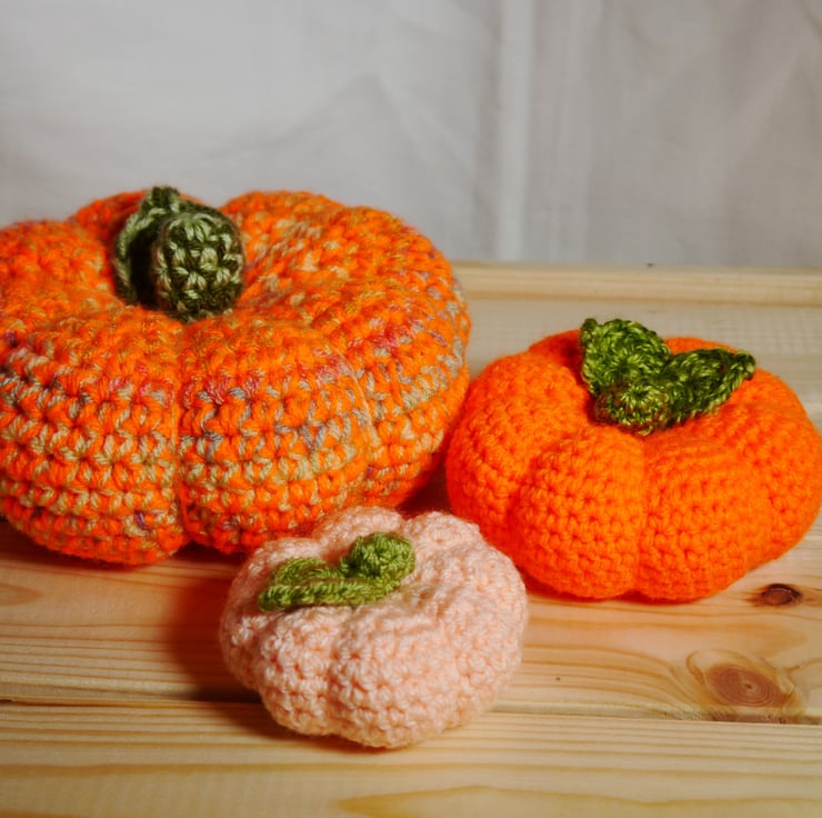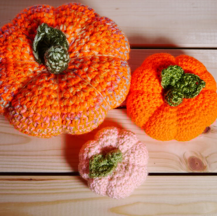 Add a little crochet goodness to your Autumn or Halloween decorations with this cute set of crochet pumpkins. These would look great on a table, windowsill or bookshelf, display with pinecones, twigs or even alongside real pumpkins to complete the look.
