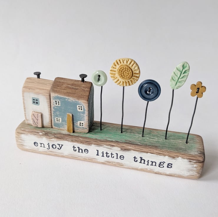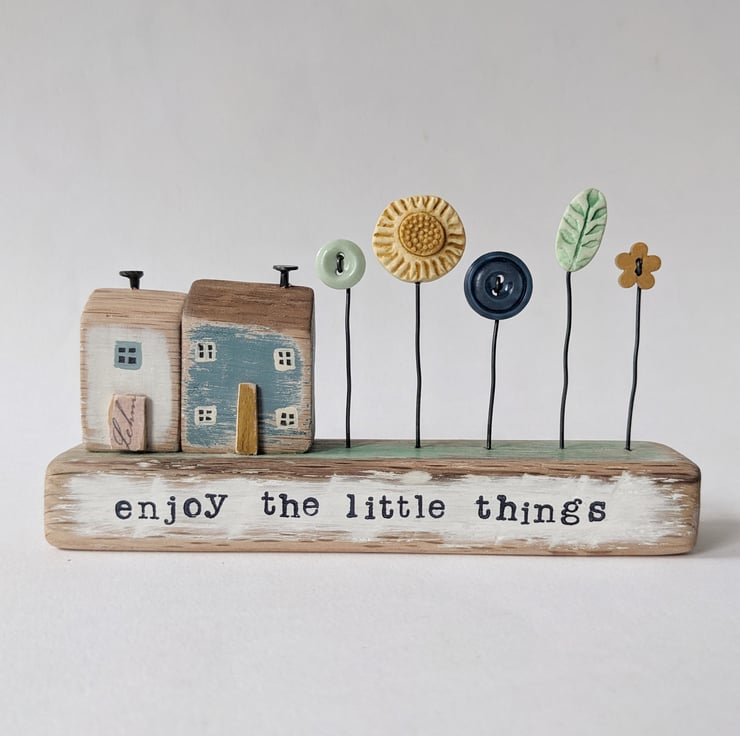 Hand stamped on the front are the words 'Enjoy the little things'.