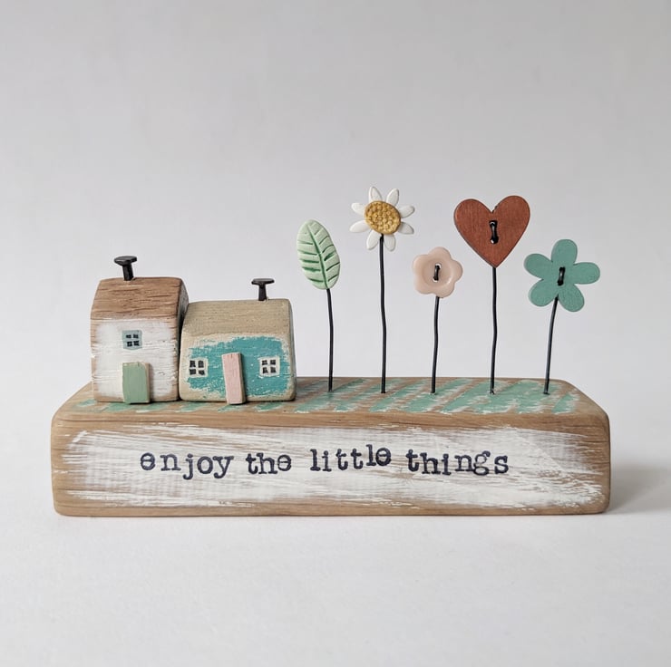 Hand stamped on the front are the words 'Enjoy the little things'.