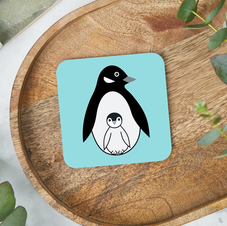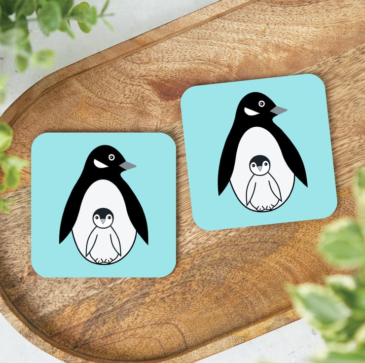 Choose either one coaster or a set of 2, 4 or 6 coasters from the drop-down menu, all in the same penguin design.