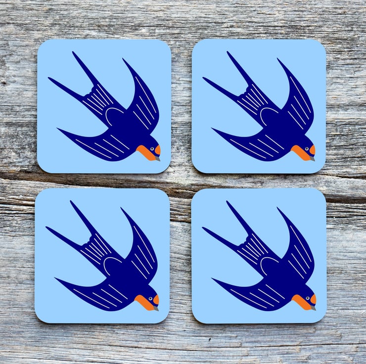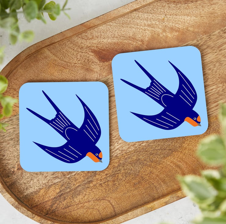 Choose either one coaster or a set of 2, 4 or 6 coasters from the drop-down menu, all in the same swallow design.