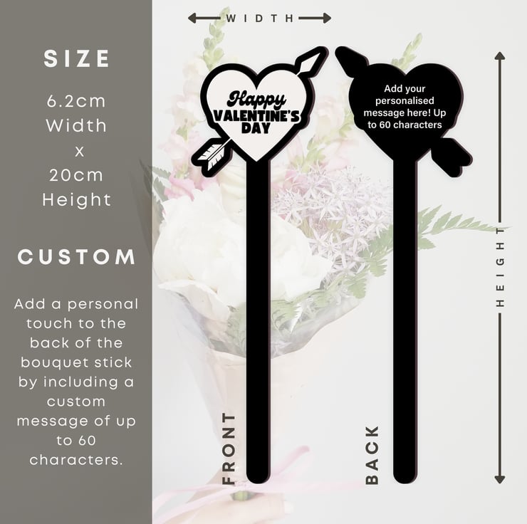Whether you're surprising your partner, friend, or loved one, this custom bouquet stick will make your Valentine's Day gift unforgettable. Simply add your custom message and select your desired colour to create a truly unique gift.