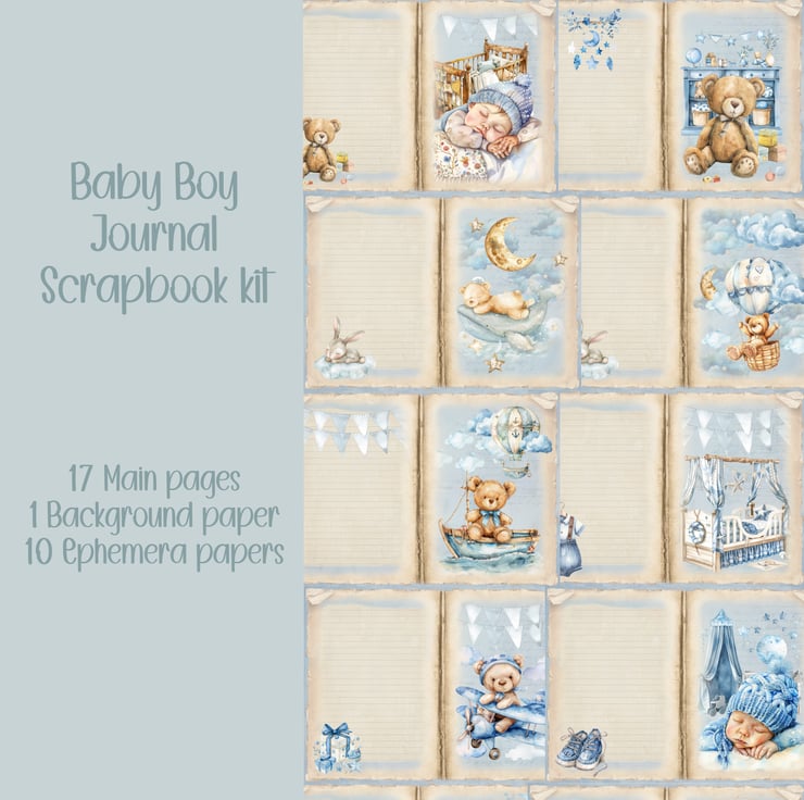 Baby Boy kit Scrapbooking, Ephemera, Journal, Digital Download