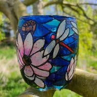 This handmade stained glass candle holder for tea lights is perfect for home decor, as a gift for housewarming party or gift for birthday to game fans, especially works of Square Enix!