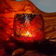 Stained glass candle holder for tea lights with Heartless, handmade suncather