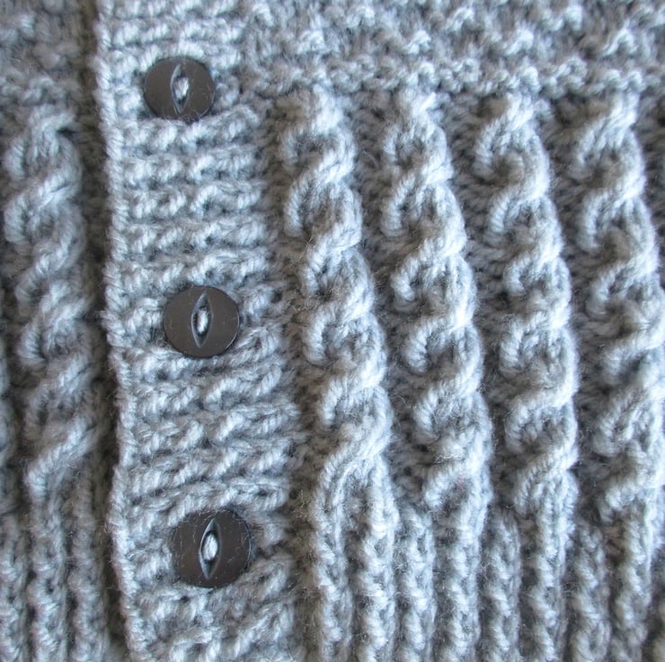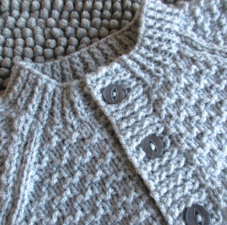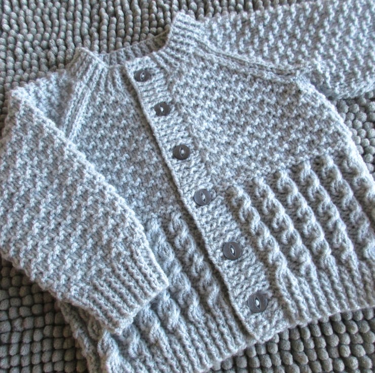 18" Patterned Baby Boys Round Neck Cardigan (Silver Grey)
