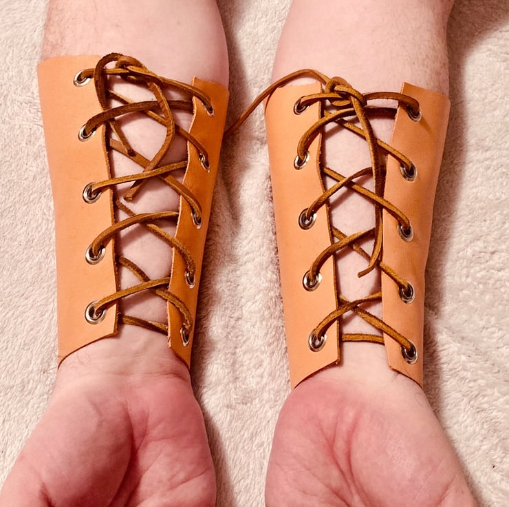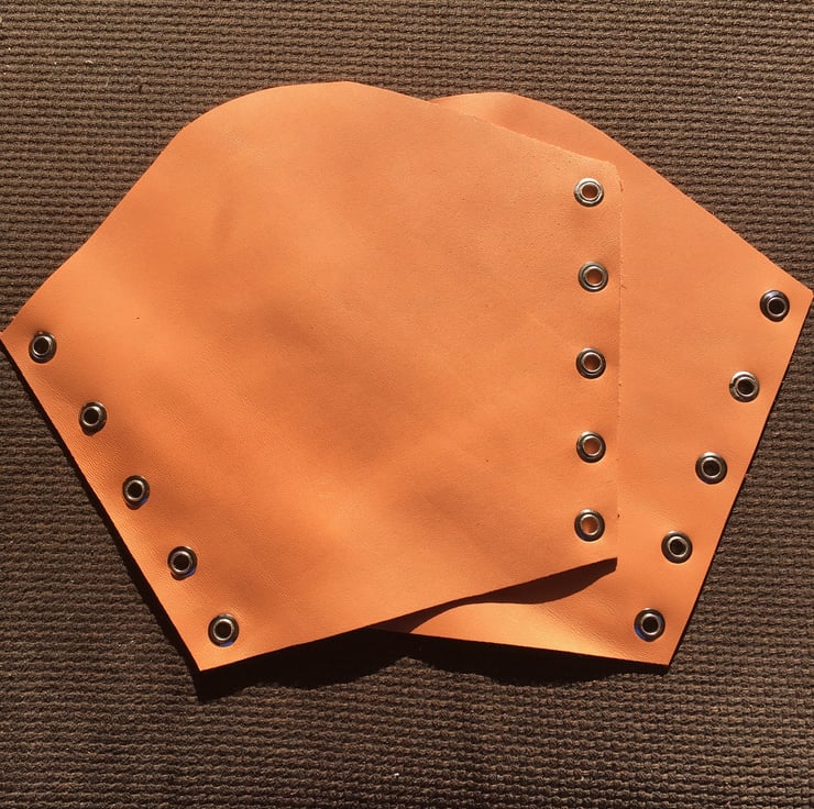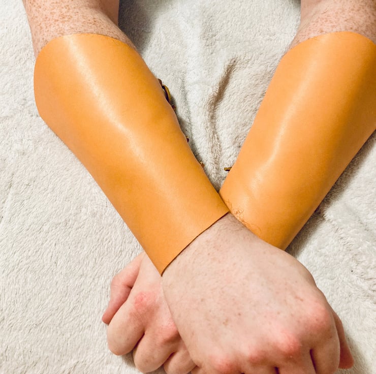 Large Pair of Peach coloured Leather Bracers (sold with lacing) - apologies for some photos - unsure why they are making the bracers look orange - they are definitely PEACH