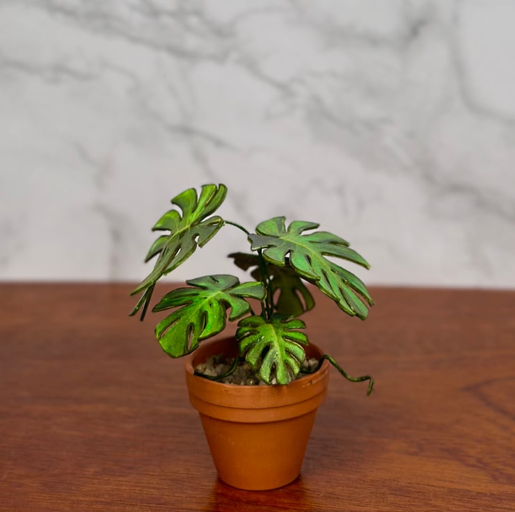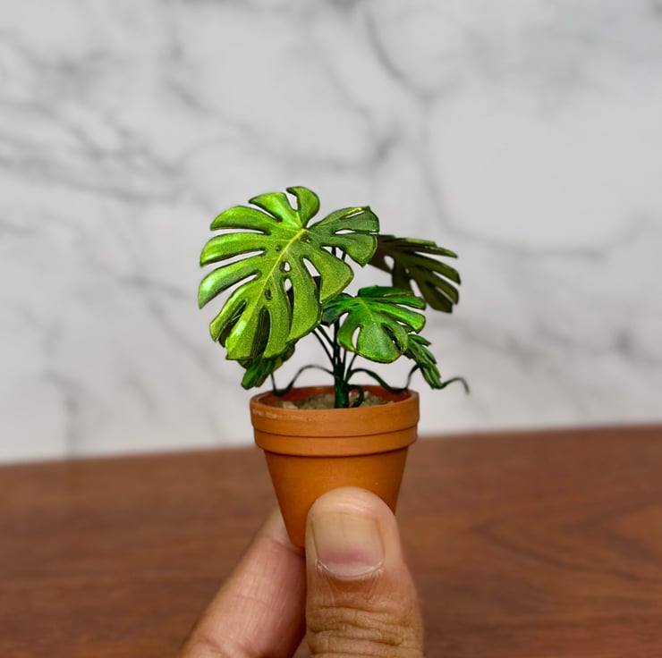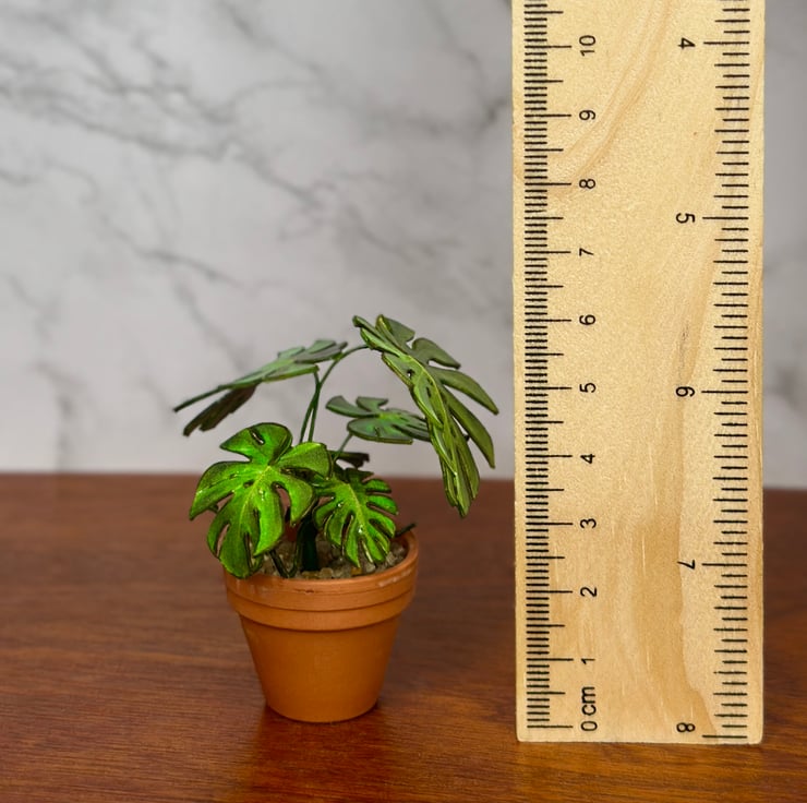 My inspiration for creating this miniature monstera plant came from my love for nature and the elegance of monstera leaves. The plant’s iconic split leaves are a symbol of tropical beauty and bring a calming, natural vibe to any space. I wanted to capture that charm in a tiny, handcrafted version that fits perfectly into dollhouses or miniature collections. Each piece is made with care to highlight the intricate details of the real monstera, combining my passion for plants with the art of miniatures.