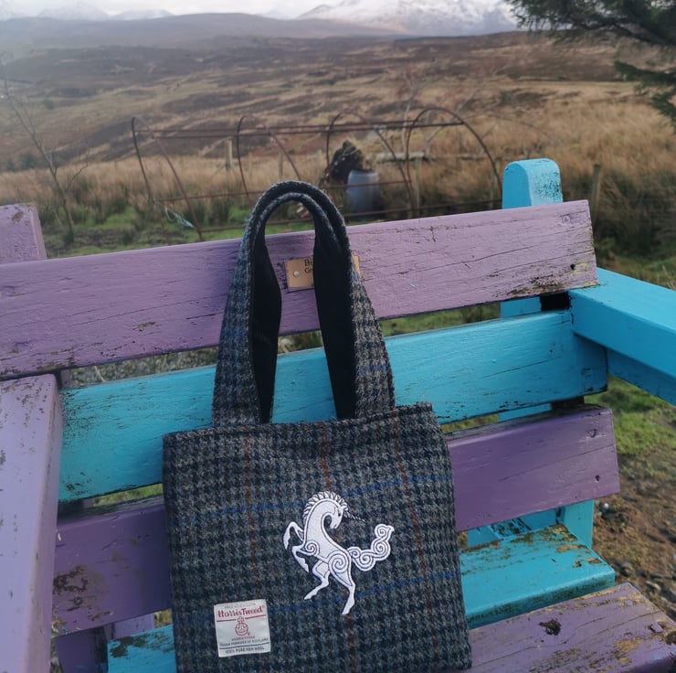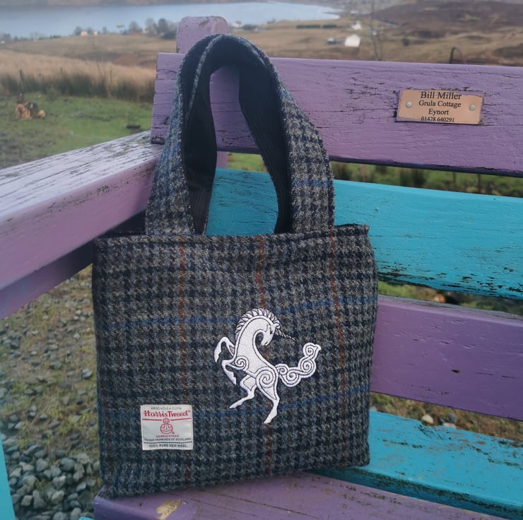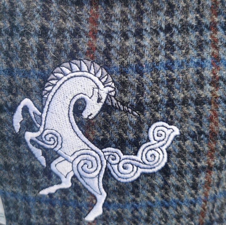 This bag has embroidered unicorn. An original piece of art work by the very lovely Marj Tait from Highland Celtic Art. I have exclusive rights and copyright to this design (how lucky am I)