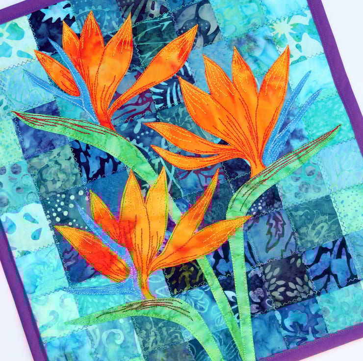 Bird of Paradise Pattern Art Quilt Wall Hanging