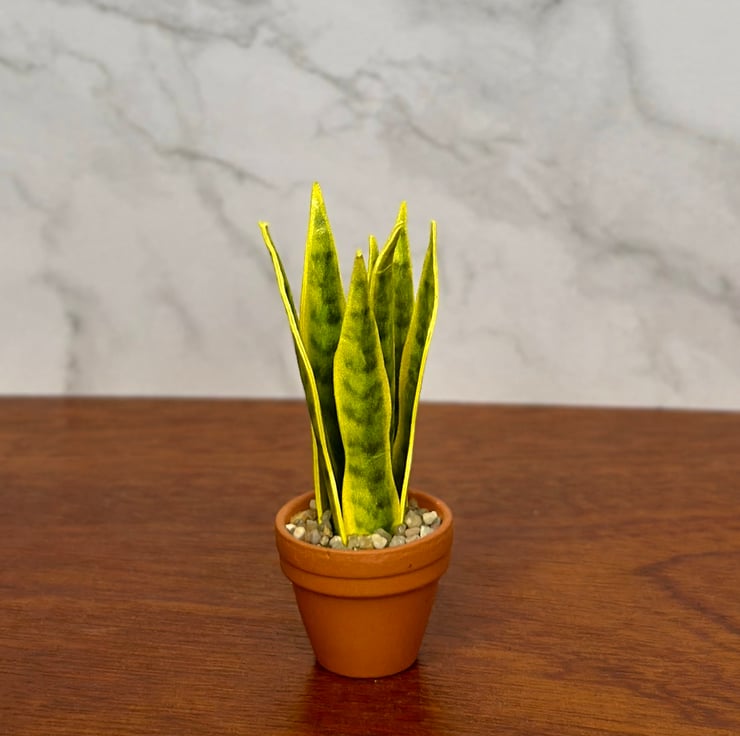 My inspiration for creating this miniature Snake Plant came from its timeless appeal and reputation as a low-maintenance, elegant houseplant. The sharp, upright leaves with striking patterns make it a modern design icon, perfect for any setting. I wanted to bring its unique beauty into the miniature world, allowing collectors and enthusiasts to enjoy its charm in the tiniest of spaces. Each piece is carefully handcrafted to reflect the realistic details of this beloved plant, combining my passion for nature and miniature artistry.