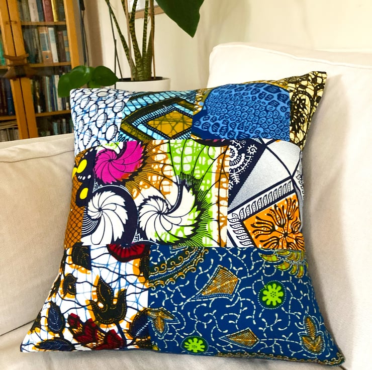 I've always loved the bright, vibrant, bold colours and patterns of West African fabrics and it has been a joy mixing and matching pieces to make these unique cushion covers.