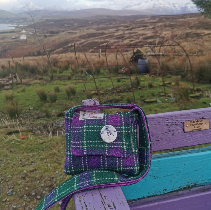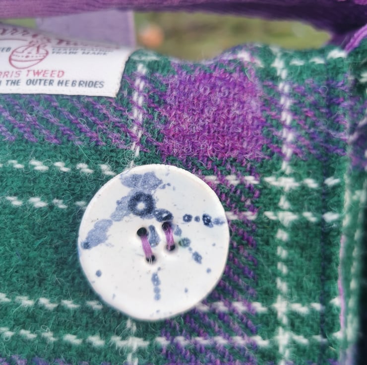 This bag has a handmade button from Orkney made by the Harray Potter