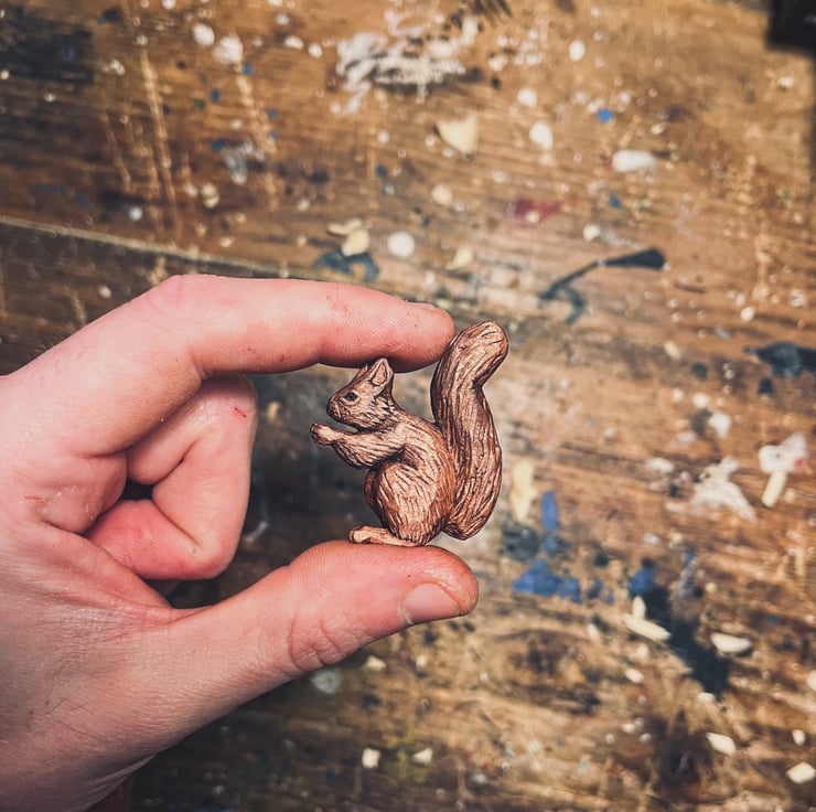 This polite little fellow is looking for his forever home, so please consider adopting a squirrel today! All of my hand carved brooch pins and pendants come with a jewellery pouch to keep your new friend safe inside, or making them perfect for gifting!