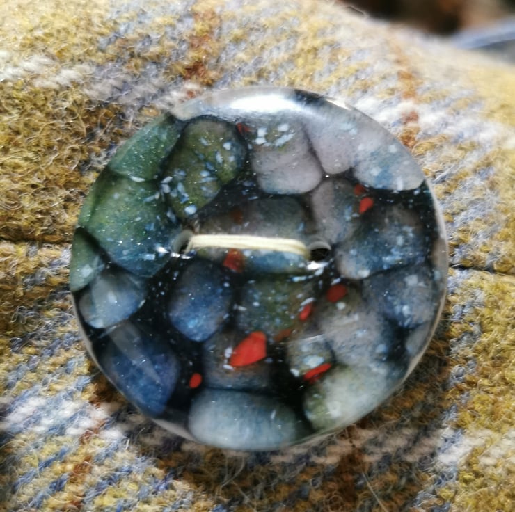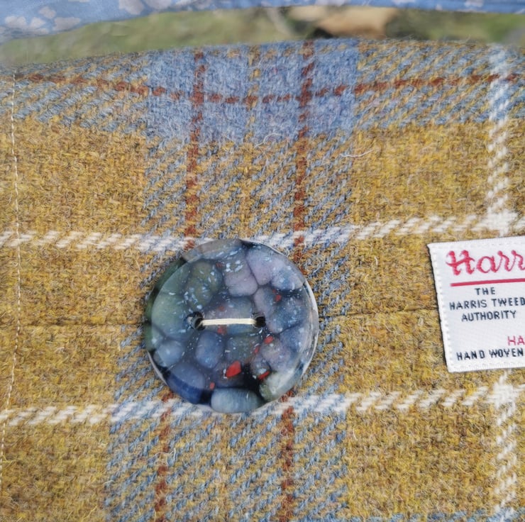 This bag is a mixture of patchwork of the same fabric and has a handmade glass button from Elizabeth over at Cuillin Glass based on skye
