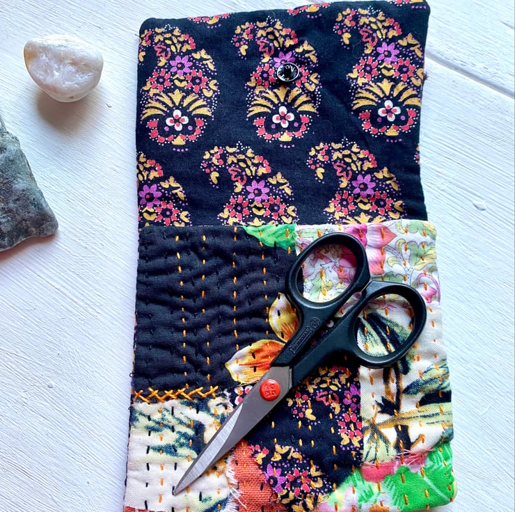 Measuring approximately 10x11cm this little purse is ideal for keeping sewing notions in.