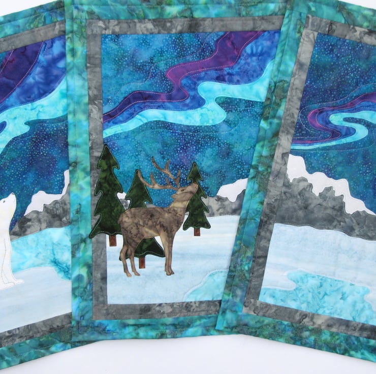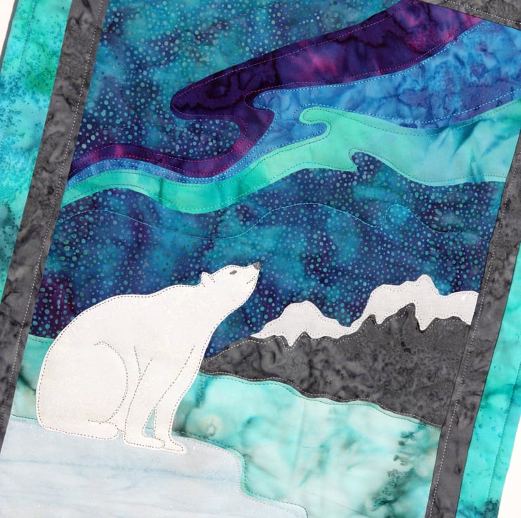 Northern Lights Polar Bear Pattern Art Quilt Wall Hanging