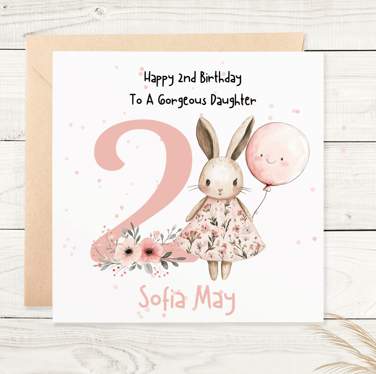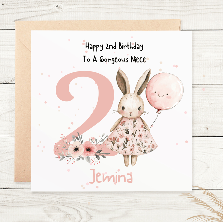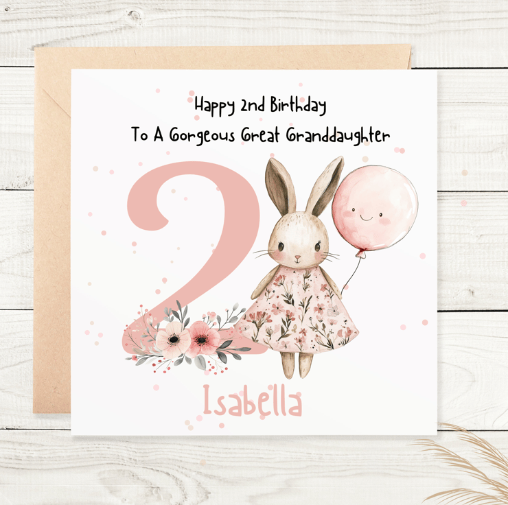 This is a lovely personalised 2nd Birthday Card. The card can be made for any relation - granddaughter, great granddaughter, niece, daughter etc.