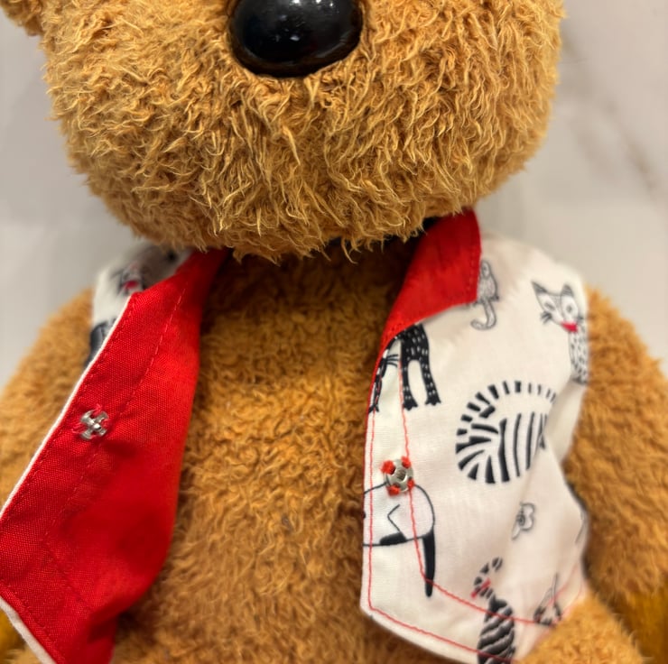 This waistcoat is made for a medium size teddy approx 13”/34cm tall.