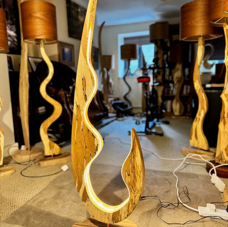The design of my lamps is largely dictated by the type of wood , its grain pattern and size. I work closely with my friend Nigel who supplies my wood.