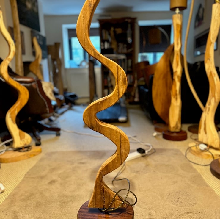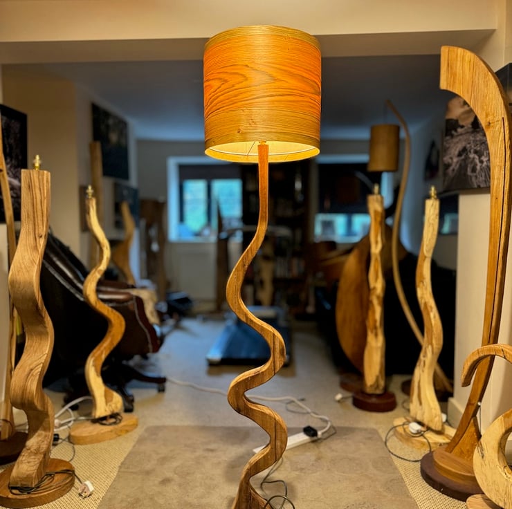 The design of my lamps is largely dictated by the type of wood , its grain pattern and size. I work closely with my friend Nigel who supplies my wood. This lamp is made from reclaimed railway sleepers