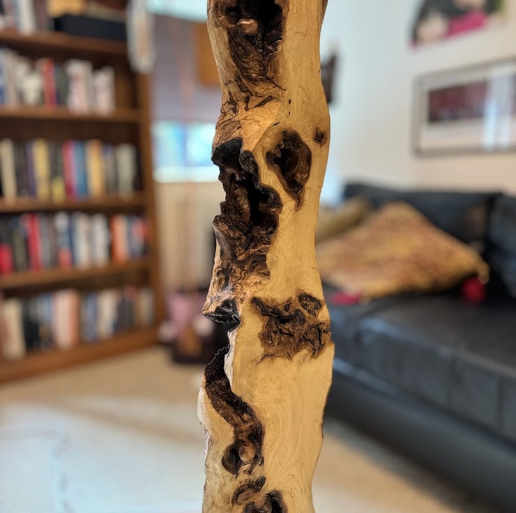 The design of my lamps is largely dictated by the type of wood , its grain pattern and size. I work closely with my friend Nigel who supplies my wood.