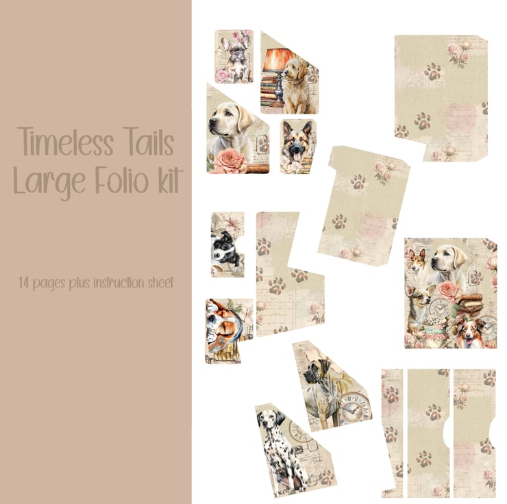 Timeless Tails Large Folio kit Scrapbooking, Ephemera, Journal, Digital Download