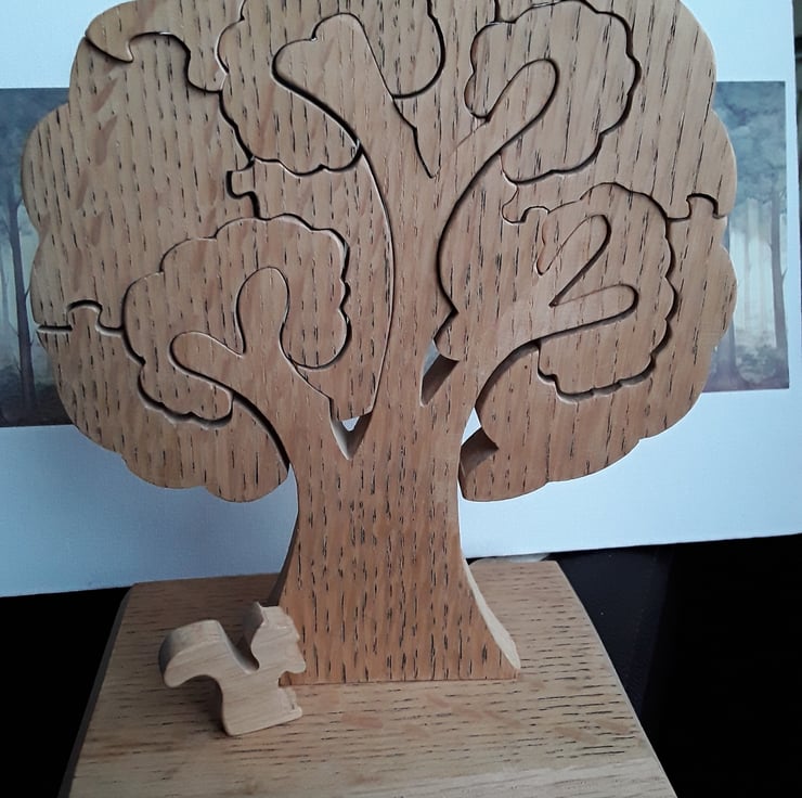 A solid Oak Tree Puzzle, this Oak Tree Puzzle is approximately 23cm tall and 17cm wide at the base and 11cm from front to back, when put together makes a wonderful ornament to display, Price includes p&p.