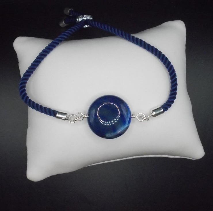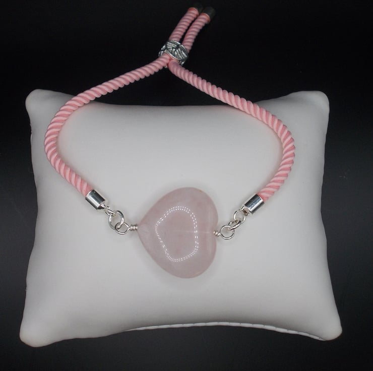 This selection of 3 cord slider bracelets features a rose quartz heart, a deep blue banded agate coin and a rich purple agate coin.