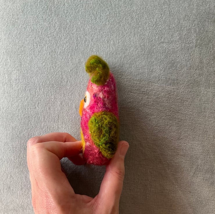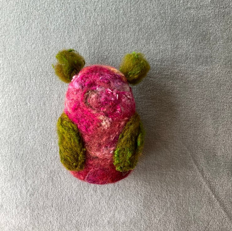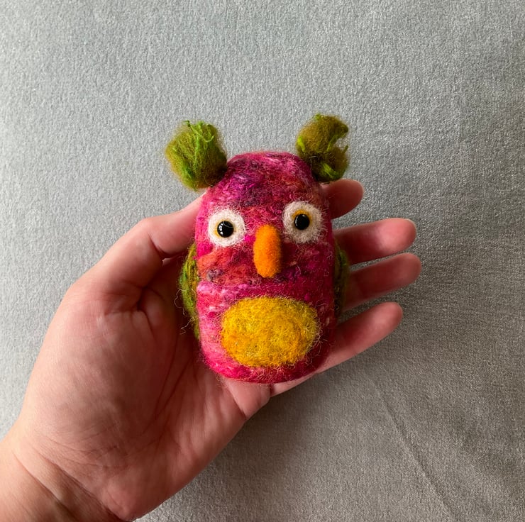 Made by needle felting ethically sourced wool and silk fibres, with glass eyes.