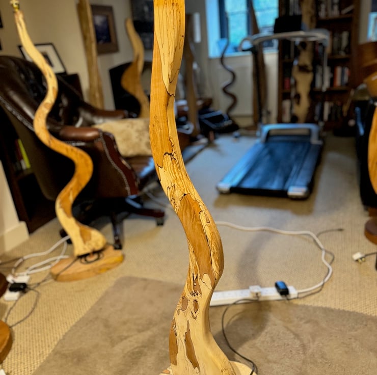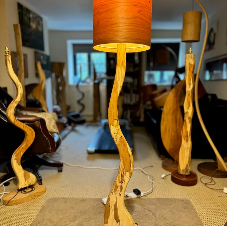 The design of my lamps is largely dictated by the type of wood , its grain pattern and size. I work closely with my friend Nigel who supplies my wood.